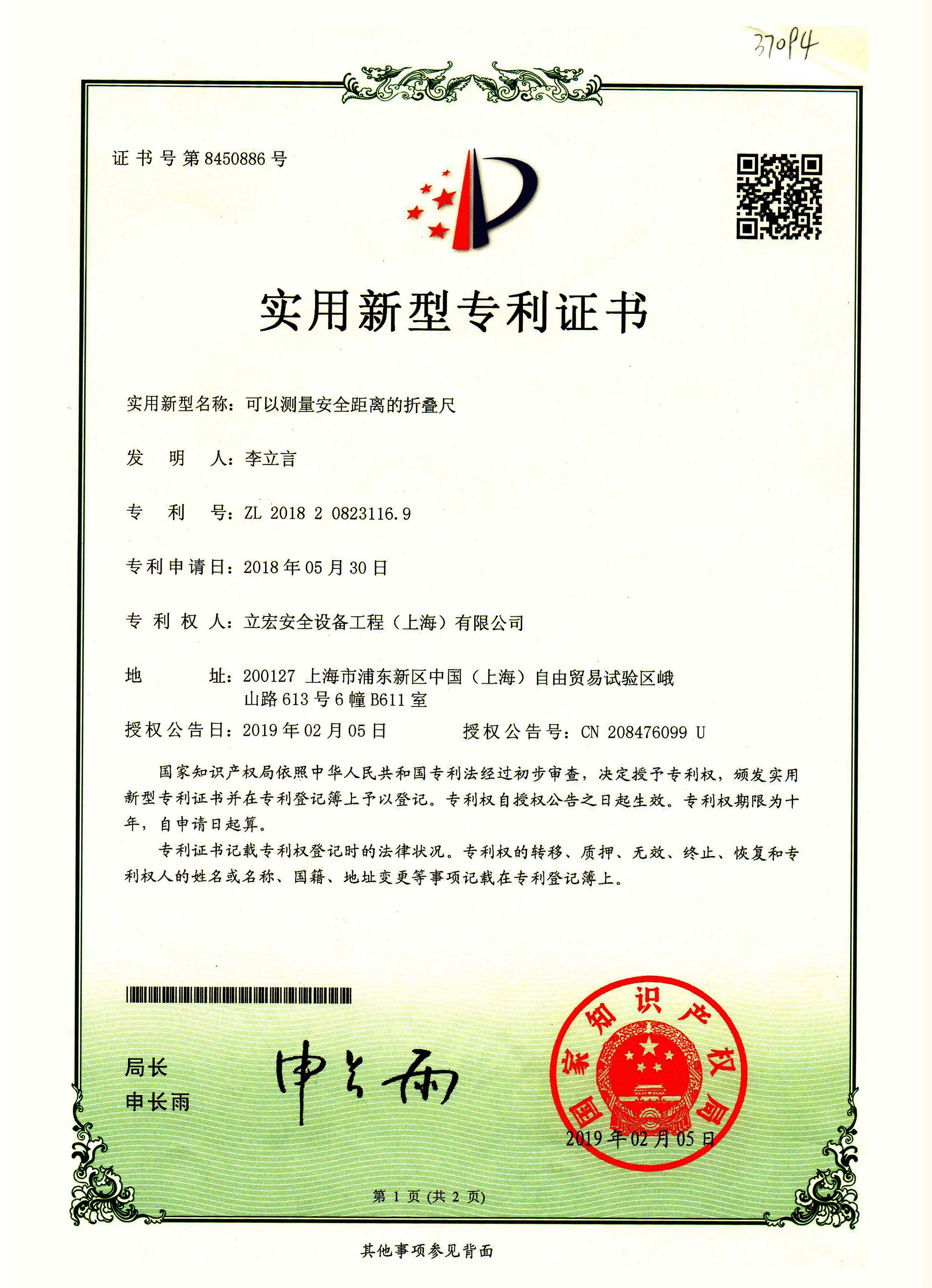 實用新型名稱:可以測量安全距離的折疊尺專利號:ZL201820823116.9