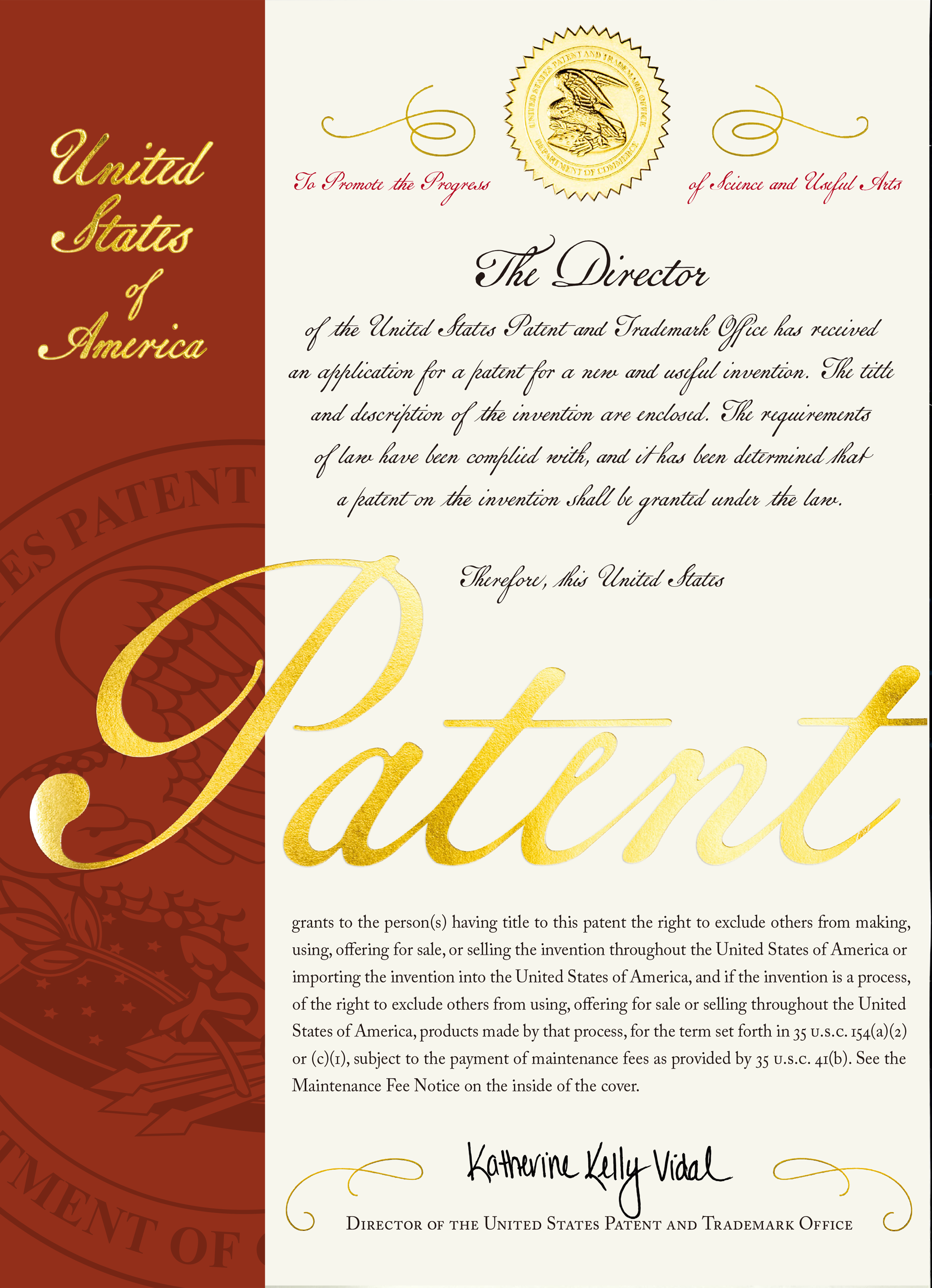 The Dlirector of the Uniid Satas Satunt and Tradimah fci has rcuived an aphlicatin for a patint for a nim and usfal inventin.Th tith and dscrijptin of the inventim are inclosud.DIRECTOR OF THE UNITED STATRS PATPNT AND TRADEMARK OFFICEIUF