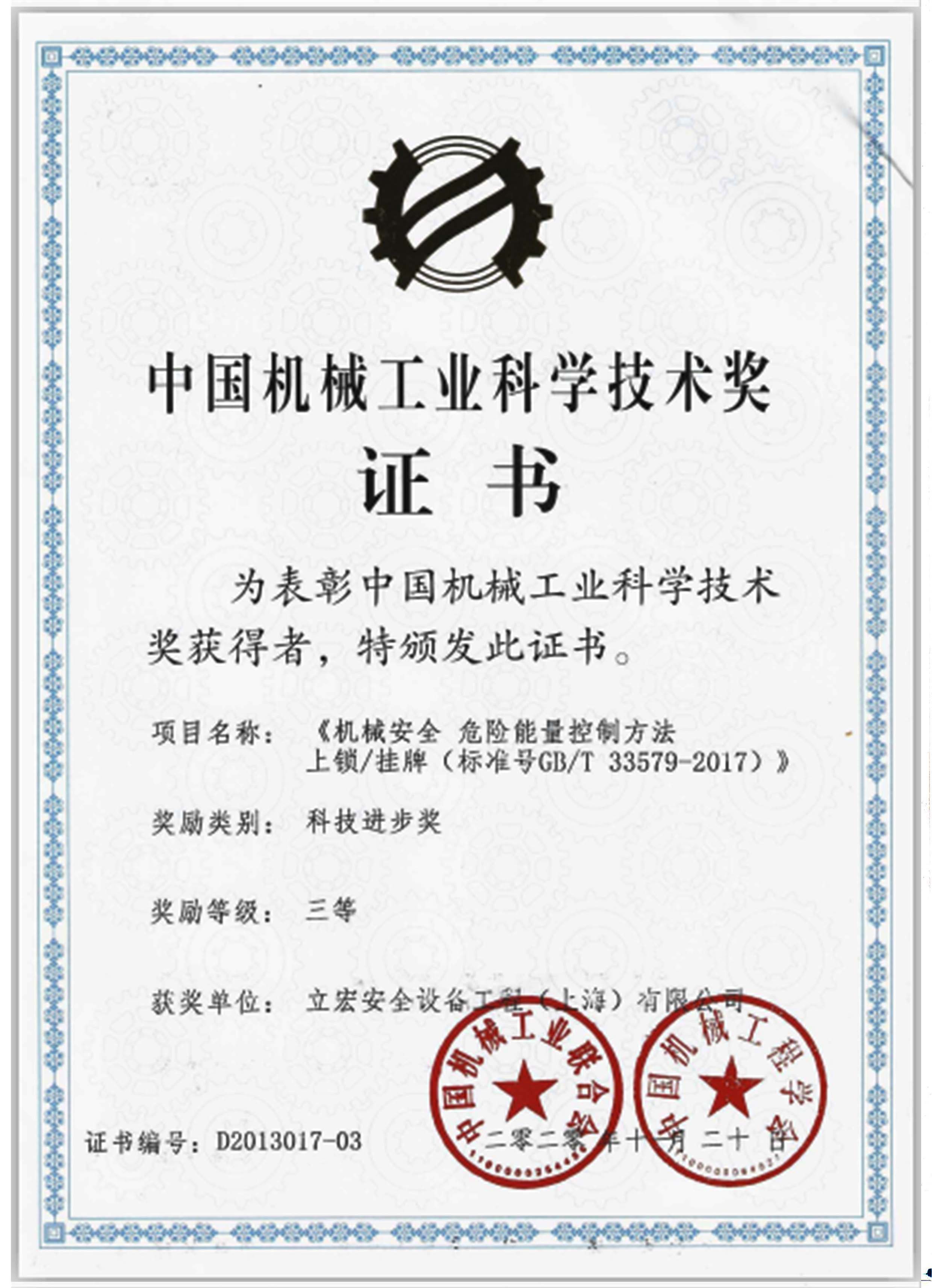 《機械安全 危險能量控制方法 上鎖/掛牌(標準號GB/T 33576-2017)》